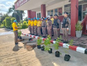 พ.ต.ท.สุวิทย์ หริรักษ์ สว.สภ.บ้านกุ่ม พร้อมด้วยข้าราชการตำรวจ สภ.บ้านกุ่ม ร่วมกิจกรรมจิตอาสา (ปลูกต้นทองอุไร) บริเวณ หน้า สถานีตำรวจภูธรบ้านกุ่ม