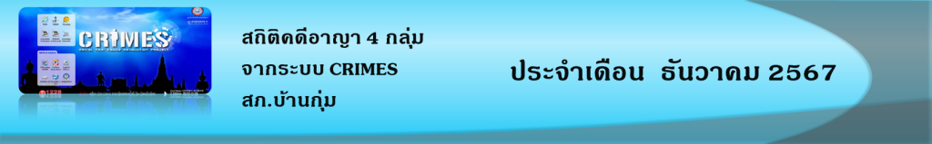 • ข้อมูลผลการดำเนินงานในเชิงสถิติด้านคดีอาญา 4 กลุ่มตามระบบ CRIMES เดือน ธ.ค.67 ในรูปแบบไฟล์ PDFคลิ๊กดูที่นี่