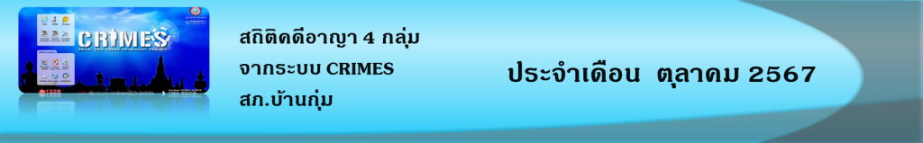 • ข้อมูลผลการดำเนินงานในเชิงสถิติด้านคดีอาญา 4 กลุ่มตามระบบ CRIMES เดือน ต.ค.67 ในรูปแบบไฟล์ Excel คลิ๊กดูที่นี่