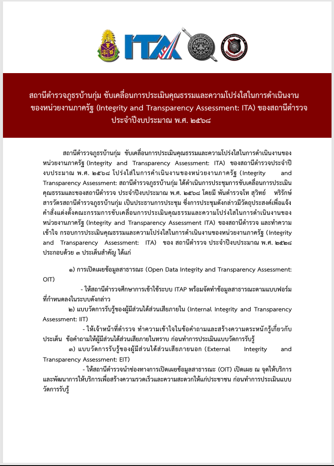 การประชาสัมพันธ์ข้อมูลผลการดำเนินงานของหน่วยเรื่องการประเมิน ITA ปีงบประมาณ 2568