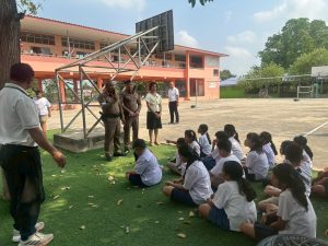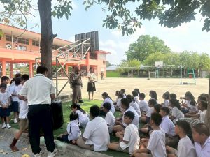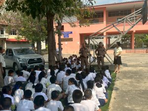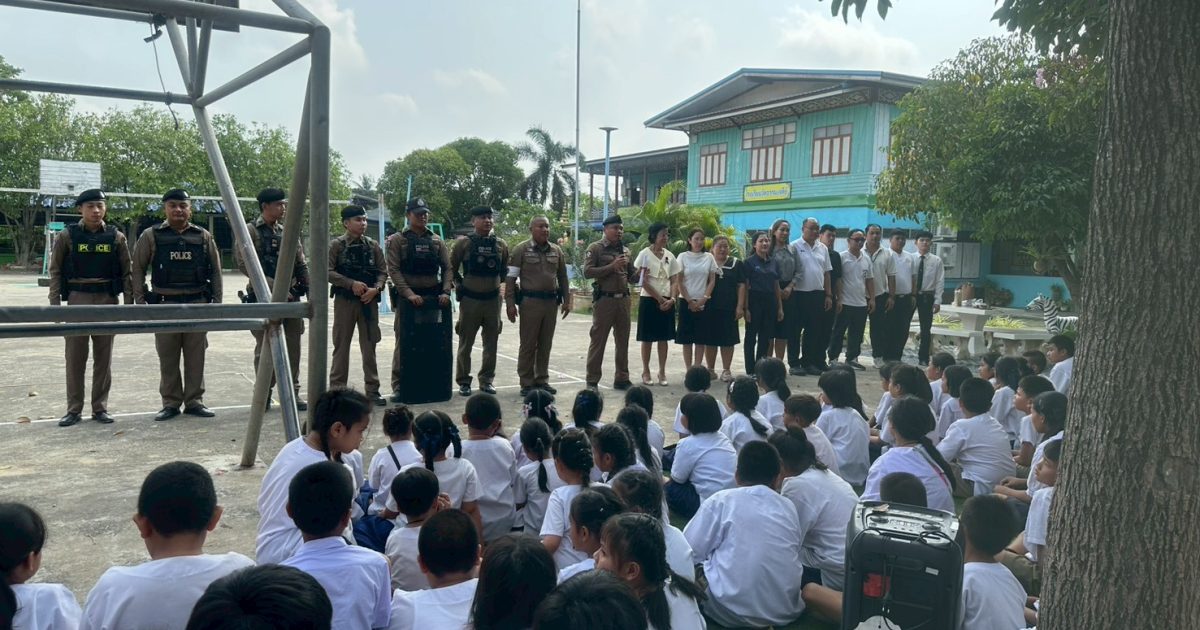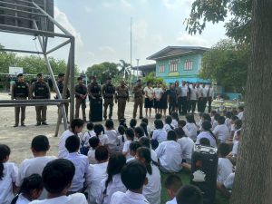 พ.ต.ท.สุวิทย์ หริรักษ์ สว.สภ.บ้านกุ่ม พร้อมกำลังเจ้าหน้าที่ตำรวจ สภ.บ้านกุ่ม รวม 15 นาย บรรยายให้ความรู้เกี่ยวกับการป้องกันอาชญากรรม การป้องกันเหตุบุคคลคลุ้มคลั่ง เหตุคนร้ายกราดยิงในสถานศึกษา ให้กับคณะครูและนักเรียน รร.วัดธรรมเจดีย์ พร้อมร่วมกัน ซักซ้อมแผนเผชิญเหตุในสถานศึกษา Active Shcoter (หนี ซ่อน สู้) ณ โรงเรียนวัดธรรมเจดีย์ ต.งิ้วราย อ.เมืองลพบุรี จว.ลพบุรี